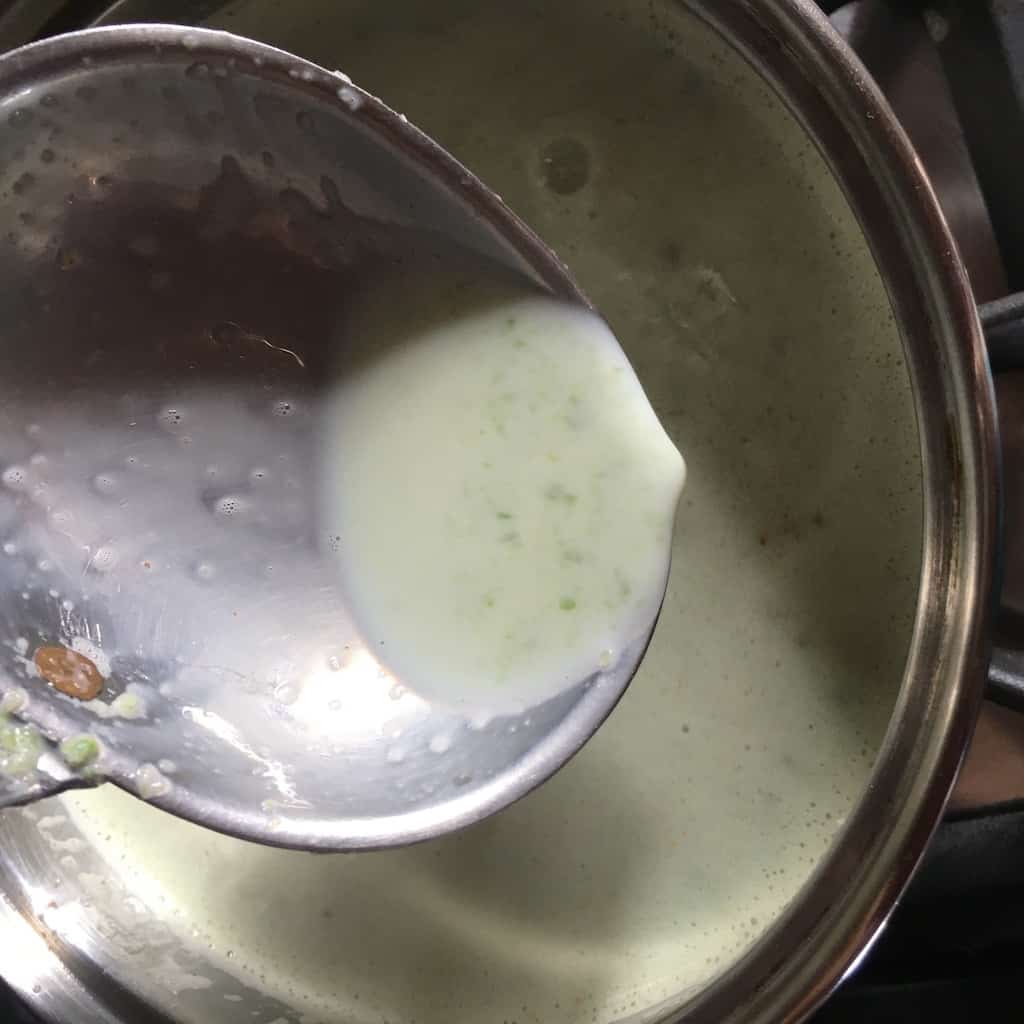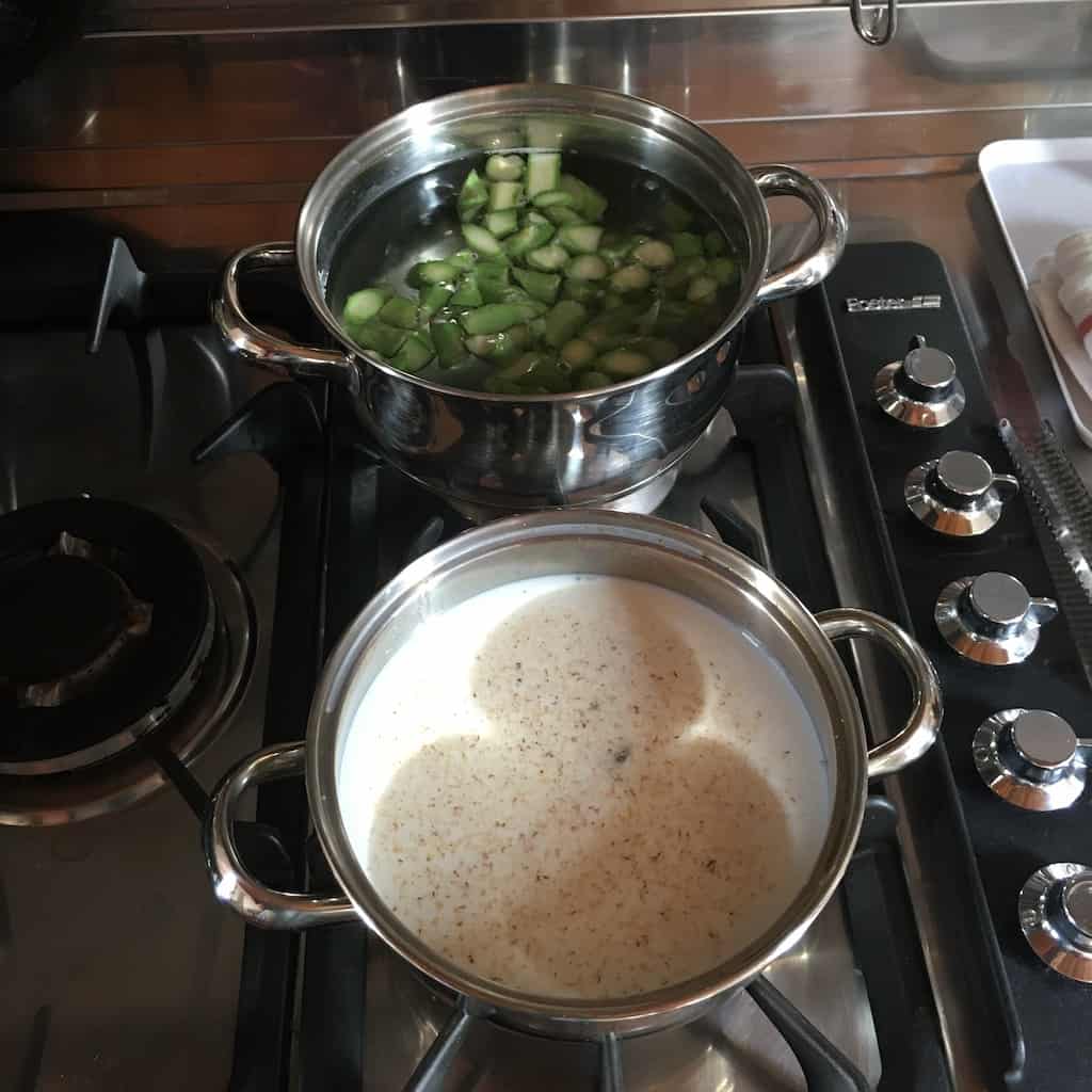Heat the asparagus-milk mixture: