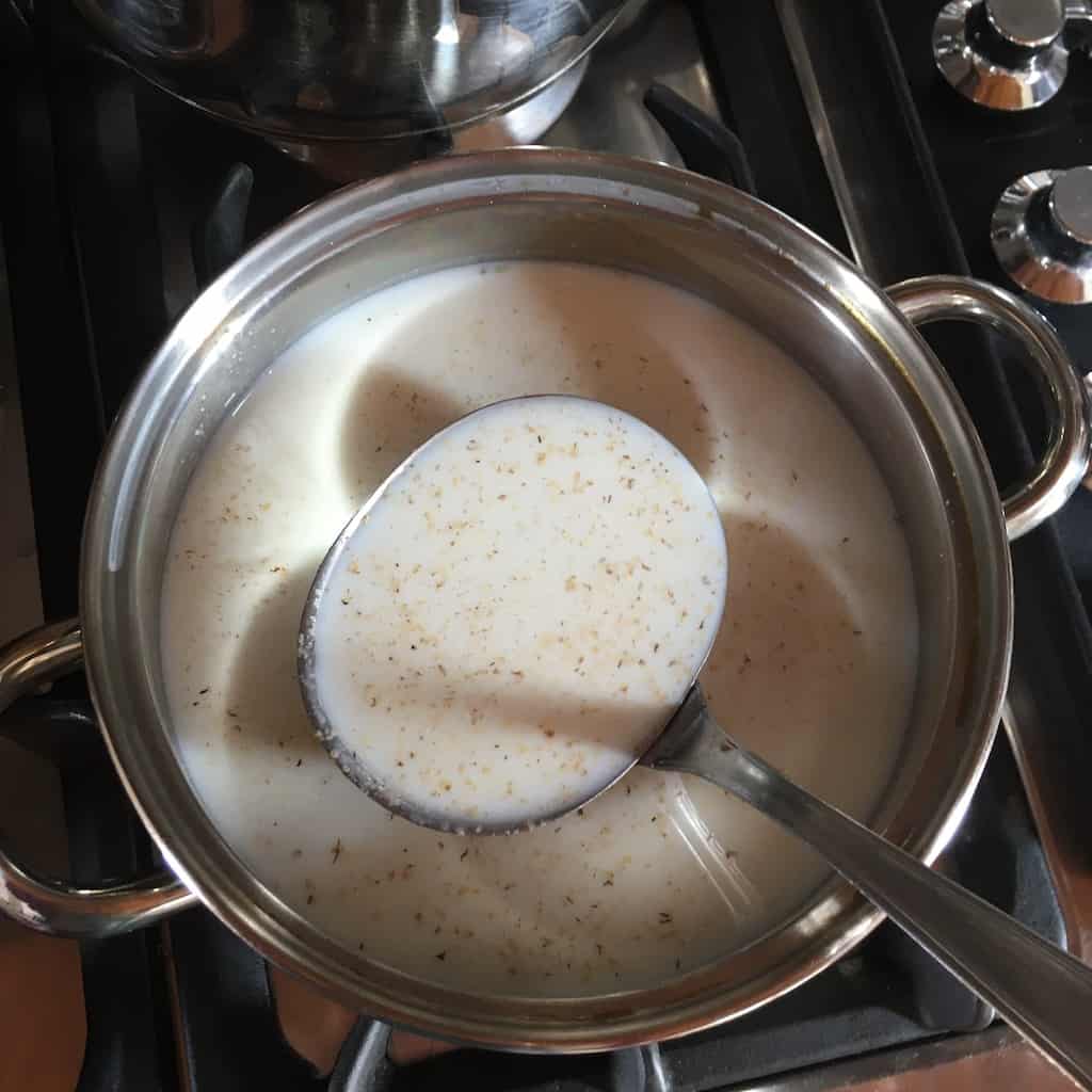 If you want to make this a vegan béchamel, just substitute the milk and butter with grapeseed oil and oat milk, or your favorite non-animal fat and unsweetened non-dairy milk substitute.