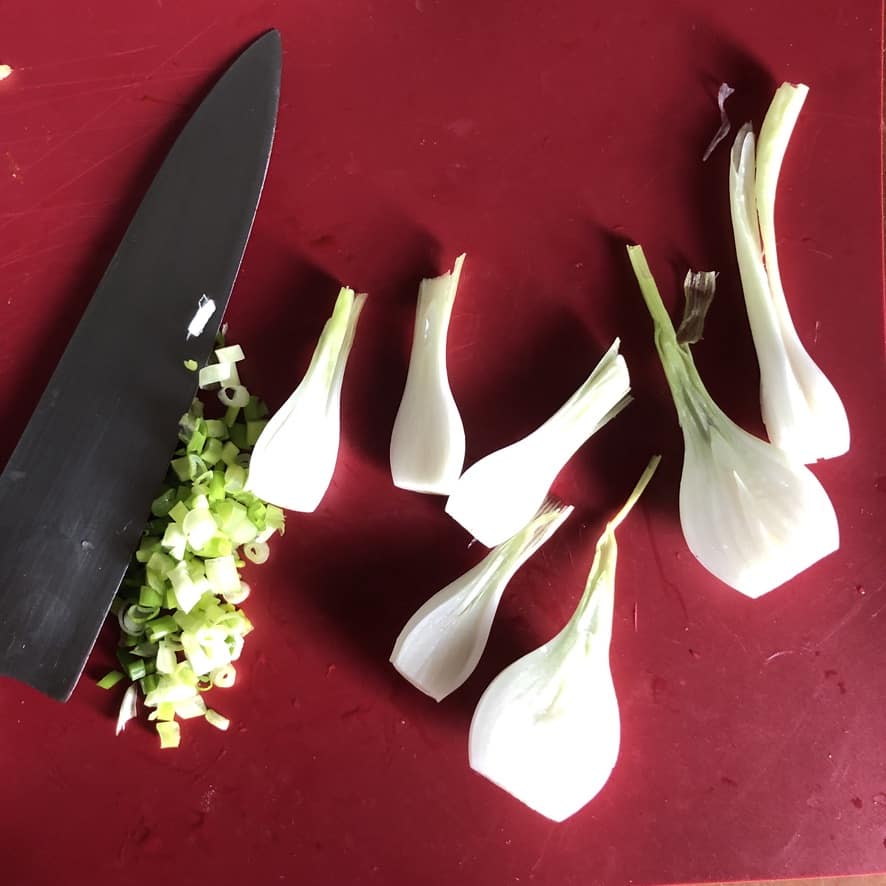 - 4 scallions, whites cut in half (greens separated, thinly sliced)