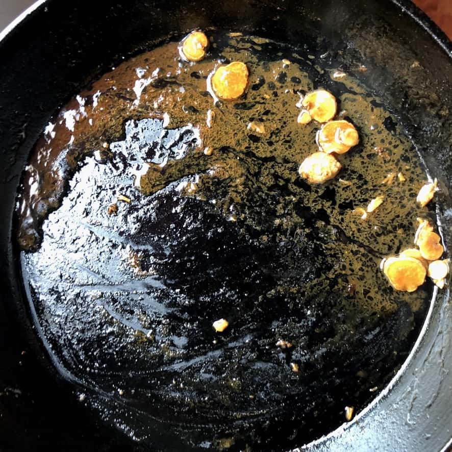 - Make a simple sauce and serve. Turn the heat back up to medium-high, add any remaining marinade sauce to the skillet and cook for a few minutes allowing it to reduce and become thicker. Once it becomes glossy and coats the back of a spoon, drizzle the sauce over the fish, and sprinkle with sesame seeds, scallions, and sliced crispy salmon skin. Top with grilled shallot halves and serve. Enjoy!