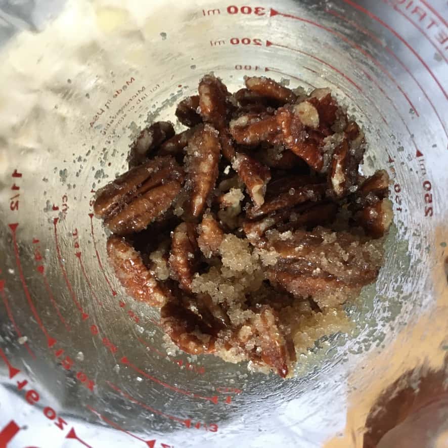 - Make the pecan crunch topping. In a small bowl, mix the melted butter, pecans, coarse raw sugar, and a couple of pinches of salt until well combined.