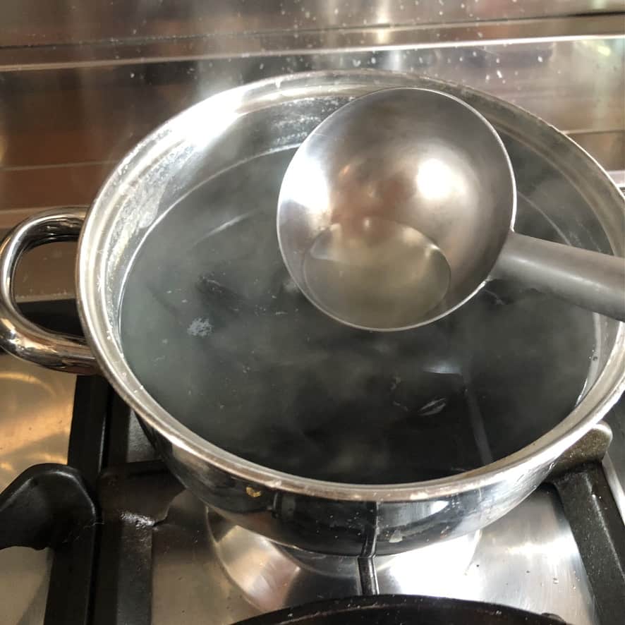 - 12 ounces Antico Pastificio Morelli squid Ink linguine (320g) (substitute regular linguine or spaghetti or fettuccine)