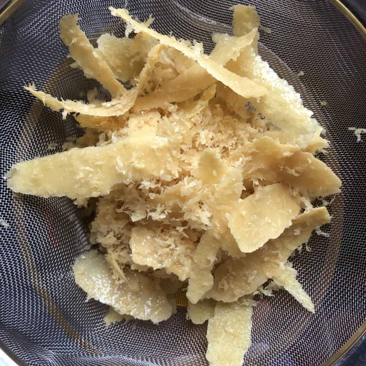 - Zest & Peel the lemons. Wash the lemons well under warm water and dry with a clean towel. Zest 7 lemons using a microplane and peel the remaining 3 lemons being sure not to include any pith (the white bitter part). If you see any pith on the peels, remove it by using a small sharp paring knife to scrape or cut it away.