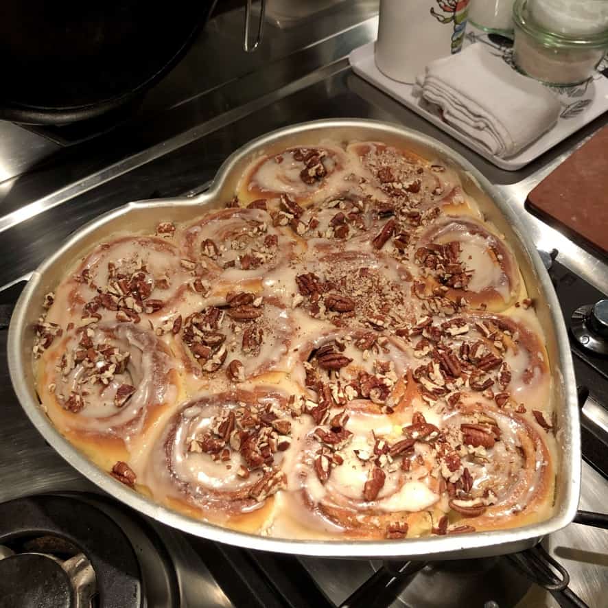 Although these cinnamon rolls don't need anything to make them better, we added some toasted pecans to the glaze, which is delicious.