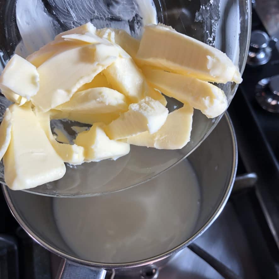 - 1 ¼ cups warmed whole milk (305g) (sub evaporated milk)