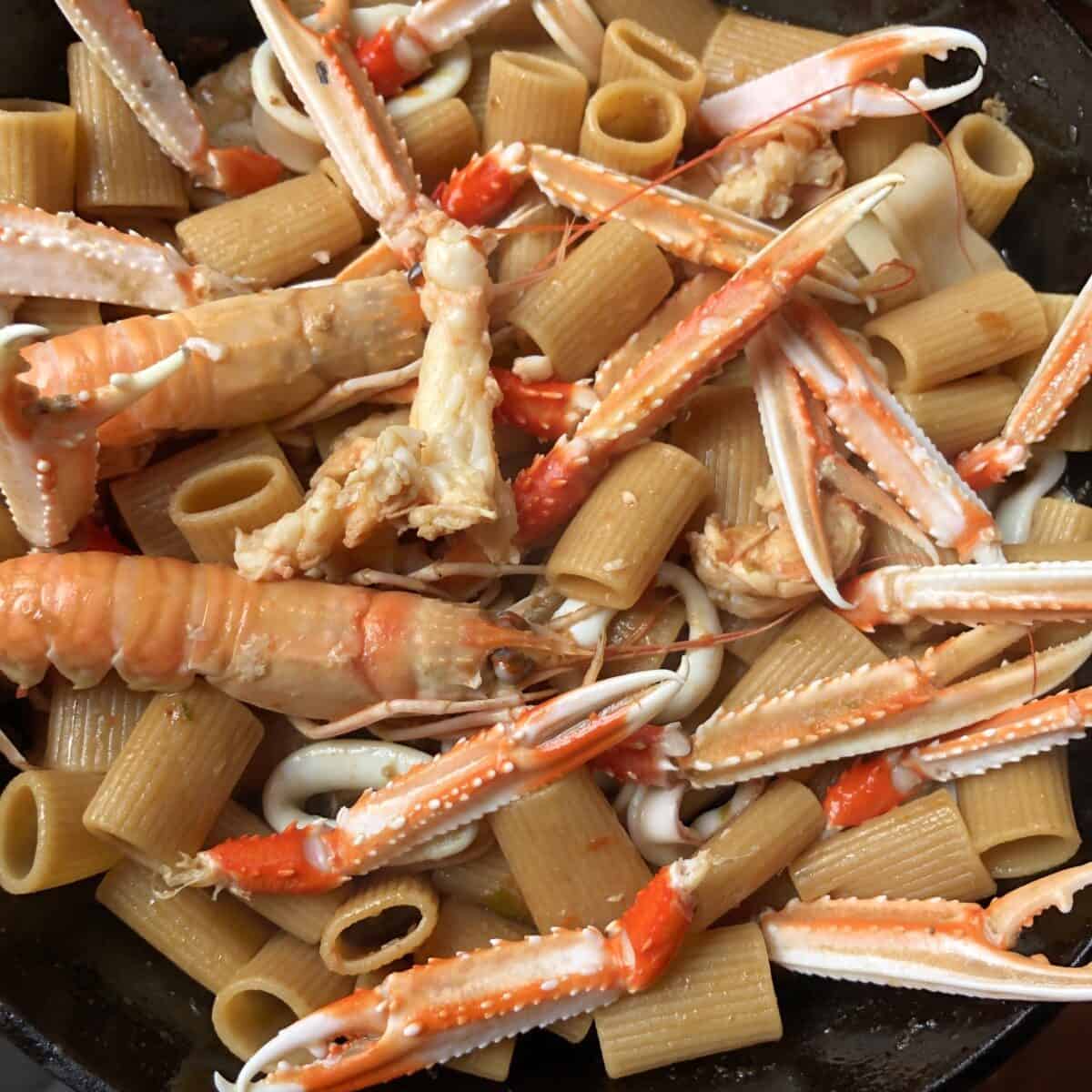 Once the stock is ready and the scampi tails have been cleaned and deveined, this is a simple and fairly quick pasta to make.