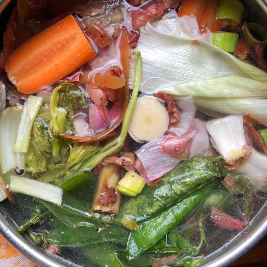 *I save all of my leftover vegetable peels and pieces in a bag in the freezer for making homemade stock, but you may sub ½ carrot, ¾ onion, and ½ celery rib.