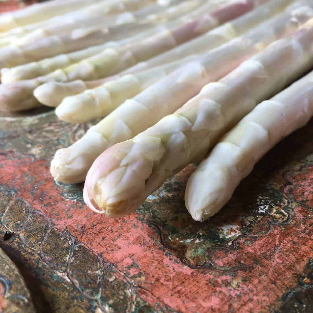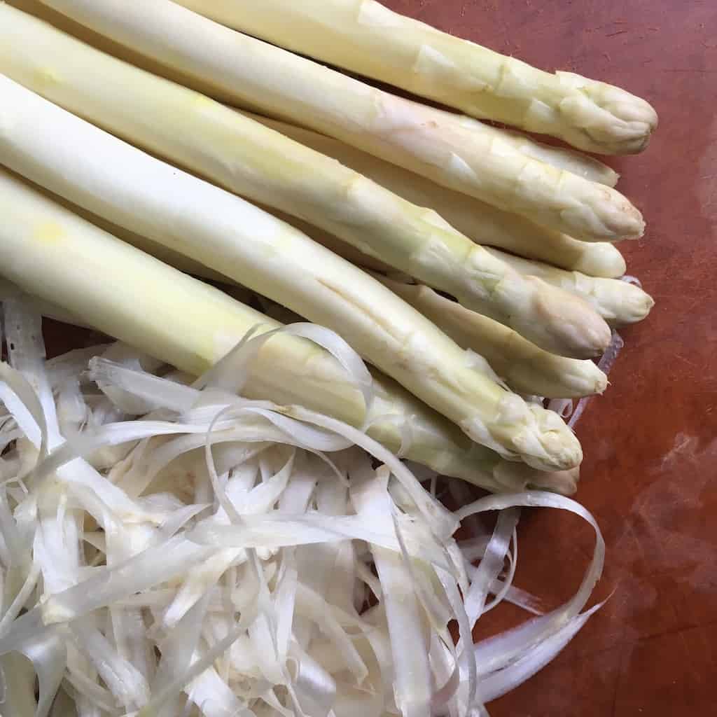 Let me be honest about white asparagus. Yes, it's delicious. But it's also at least twice as expensive as green asparagus (or purple) available in the same period. This veggie is highly prized and sought after while it's in season and highlighted on just about every local restaurant menu.